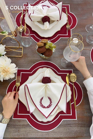 Milan Design Embroidered Placemat Set - Red Colour Waterproof Fabric - 6 Persons - 18 Pcs.