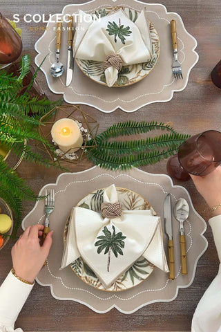 Eloise Cappuccino Design Placemat Set - Waterproof Fabric - 6 Persons - 24 Pcs. Full Set