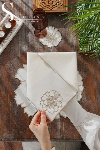 Desert Bloom Design Embroidered Placemat Set - Cappuccino Colour Waterproof Fabric - 6 Persons - 18 Pcs.
