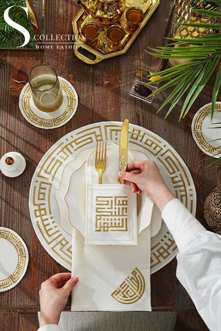 Layali Design Ramadan Collection Placemat Set - Gold Embroidered - Waterproof Fabric - 6 Persons - 18 Pcs. Full Set