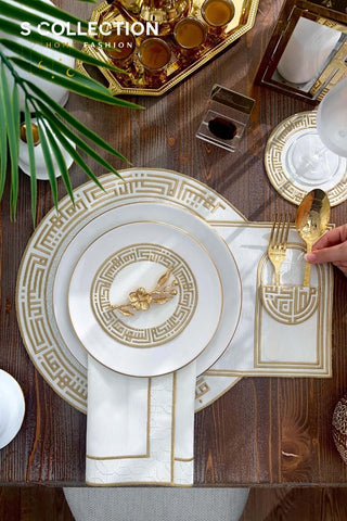 Leo Gold Design Placemat Set - Waterproof Fabric - 6 Persons - 24 Pcs. Full Set