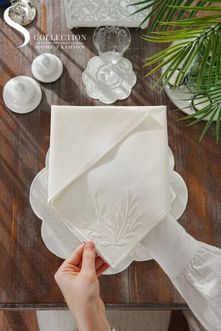 Chantal Off White Design Placemat Set - Waterproof Fabric - 6 Persons - 24 Pcs. Full Set