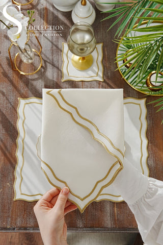 Tansy Gold and Off White Design Placemat Set - Waterproof Fabric - 6 Persons - 24 Pcs. Full Set