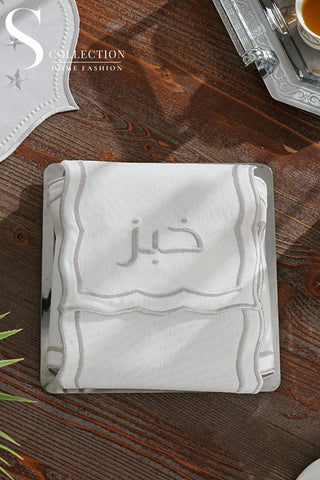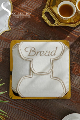 Leo Design Bread Basket Napkin - Waterproof Fabric - Off White Embroidered