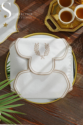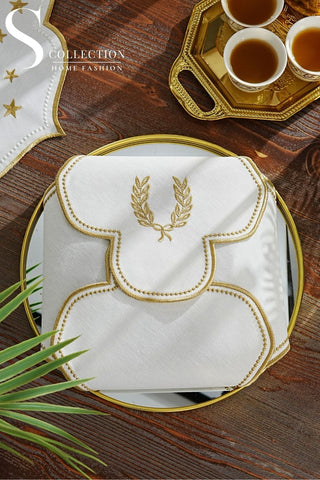 Laurel Wreath Design Bread Basket Napkin - Waterproof Fabric - Gold Embroidered