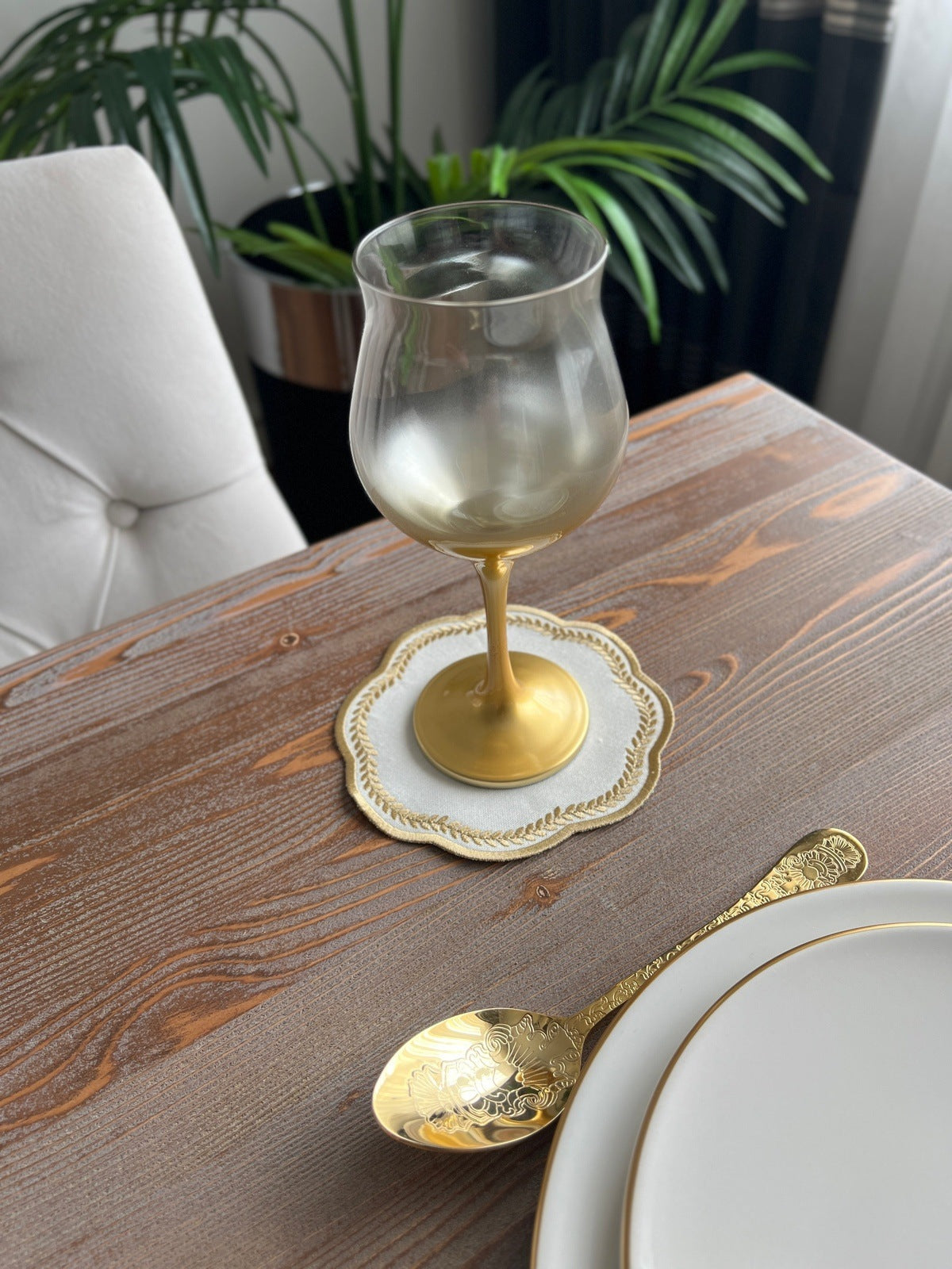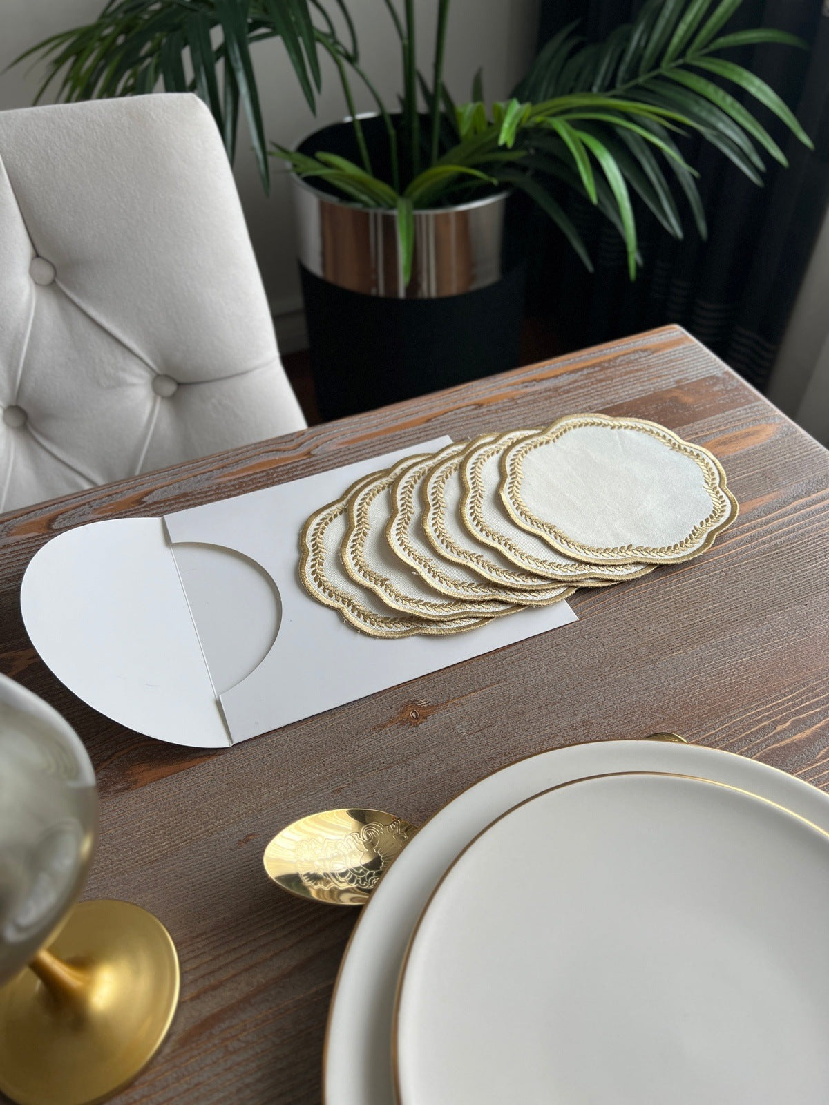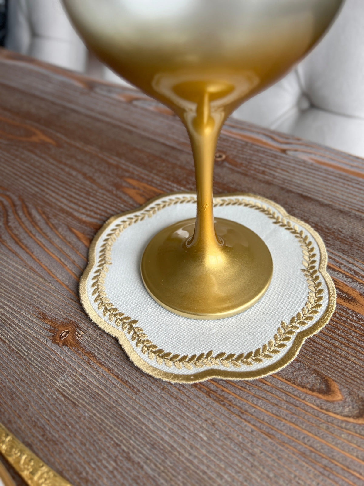Leafy Allure Design Cocktail Napkin - Waterproof Fabric - Gold Embroidered