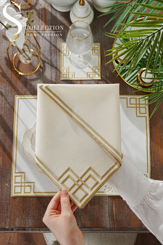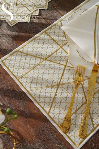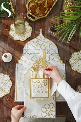 Ramadan Dome Design Gold and Off White Placemat Set - Waterproof Fabric - 6 Persons - 24 Pcs. Full Set