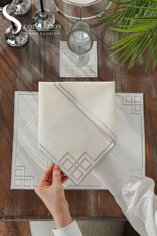 Welcome Elegance Design Silver Placemat Set - Waterproof Fabric - 6 Persons - 24 Pcs. Full Set