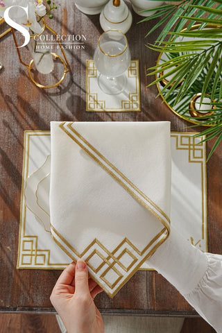 Welcome Elegance Gold Design Placemat Set - Waterproof Fabric - 6 Persons - 24 Pcs. Full Set