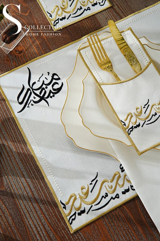 Eid Saeed Design Gold and Black Placemat Set - Waterproof Fabric - 6 Persons - 24 Pcs. Full Set
