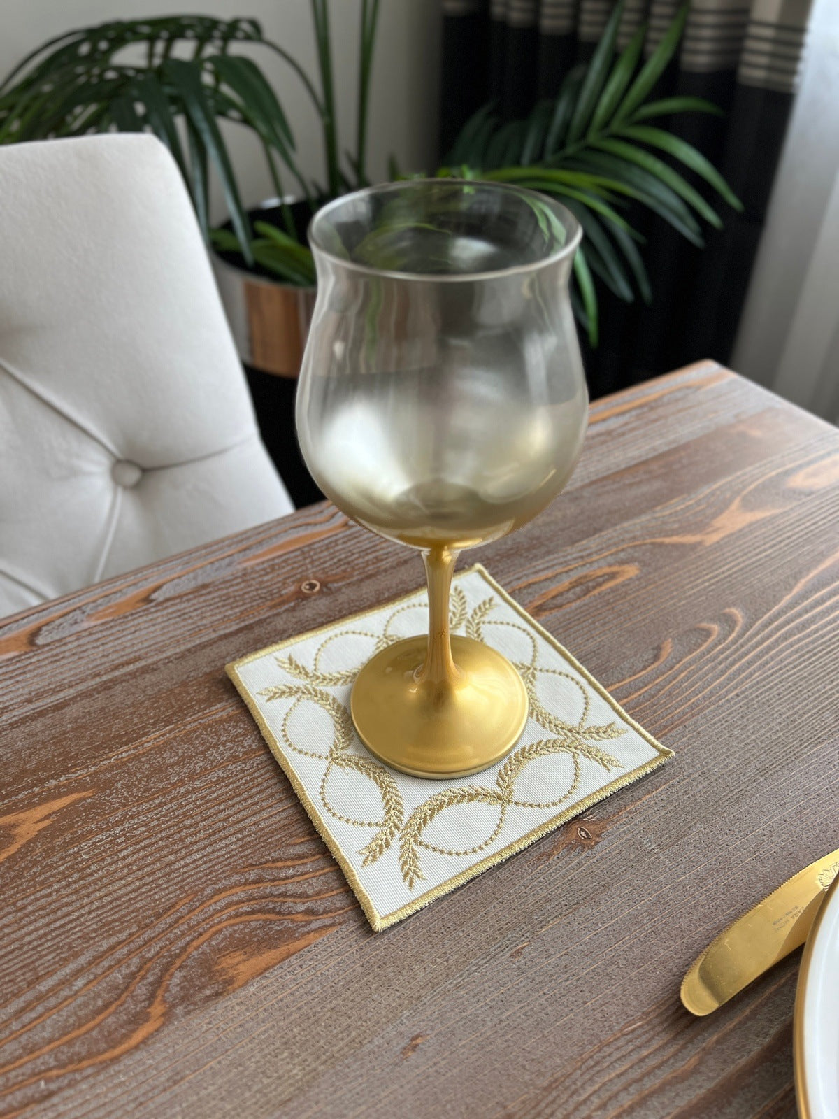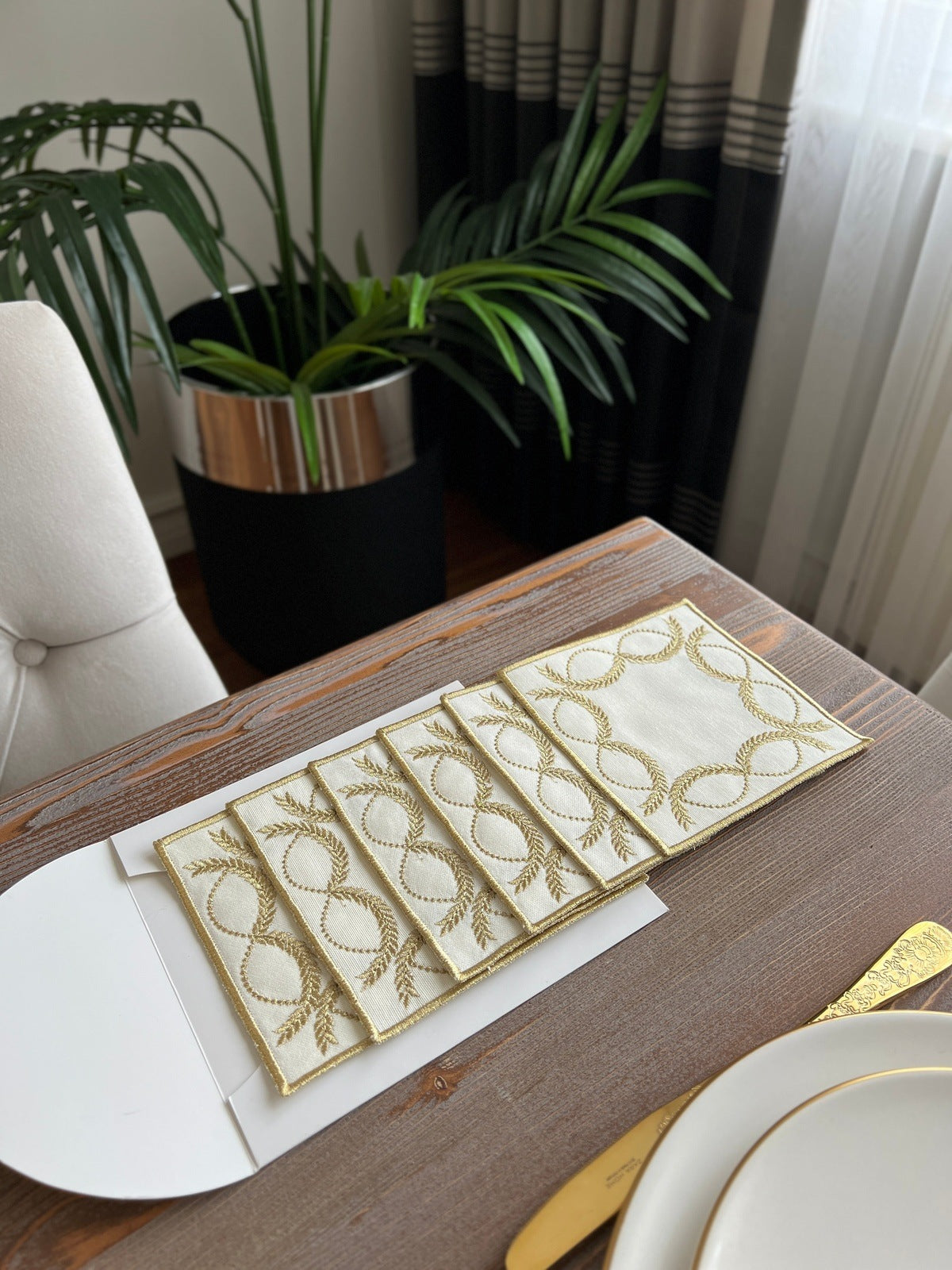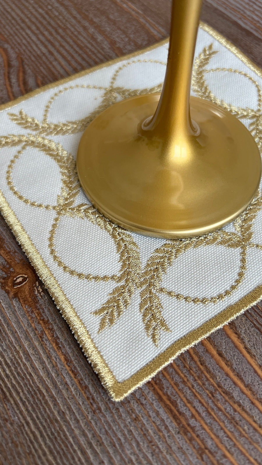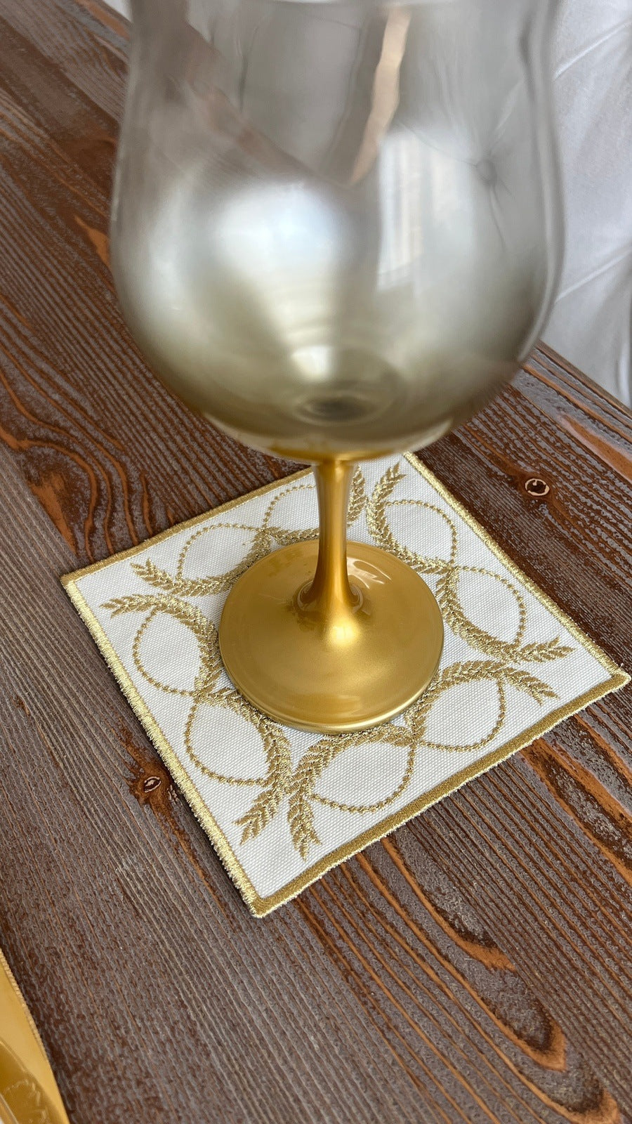 Olive Branch Design Cocktail Napkin - Waterproof Fabric - Shine Gold Embroidered