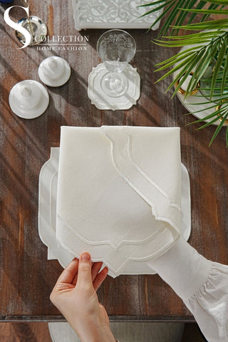 Amelia Off White Design Placemat Set - Waterproof Fabric - 6 Persons - 24 Pcs. Full Set