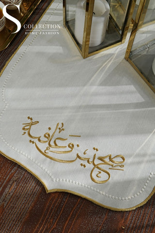 Sahtain wa Afia Design Runner - Waterproof Fabric - Gold Embroidered