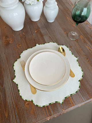 Zebra Design Placemats - Waterproof Fabric - 12 Persons - Green Embroidered