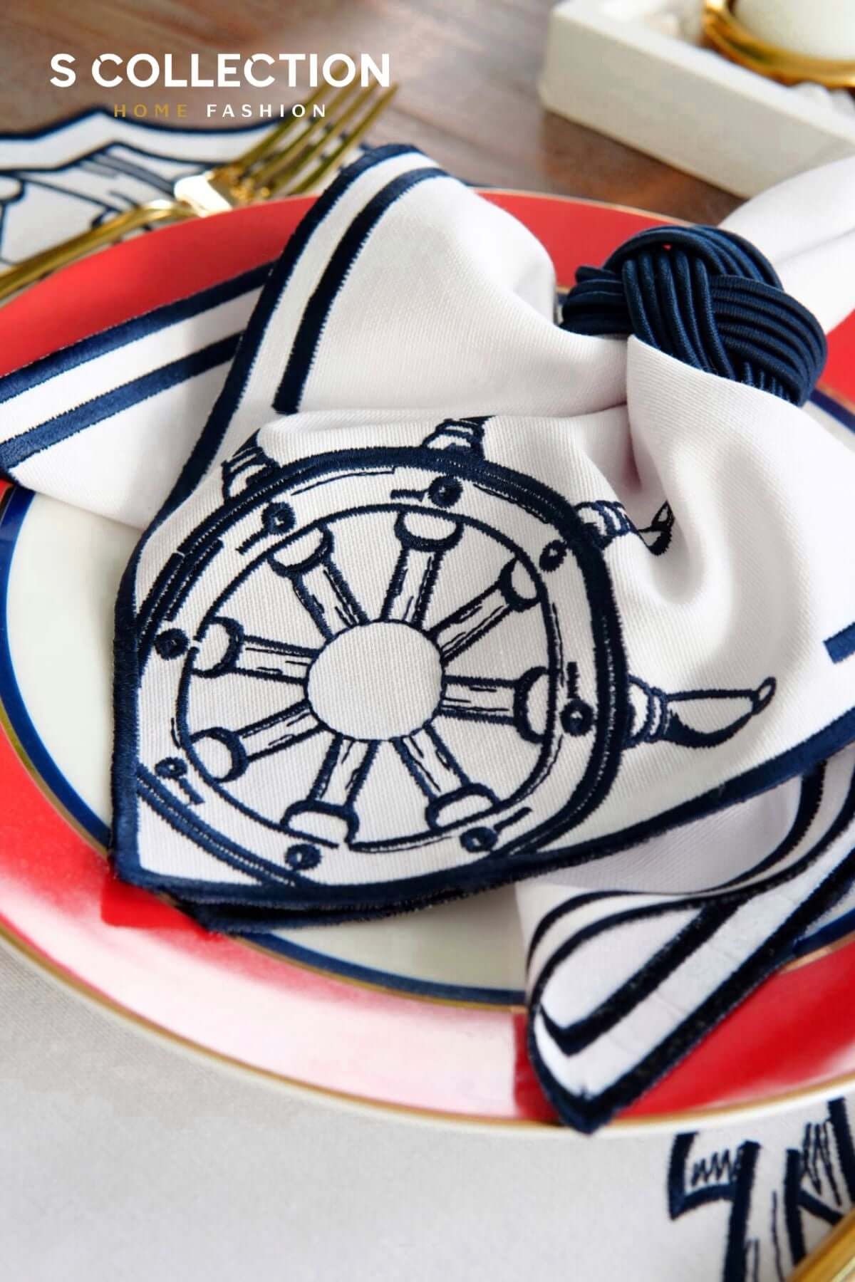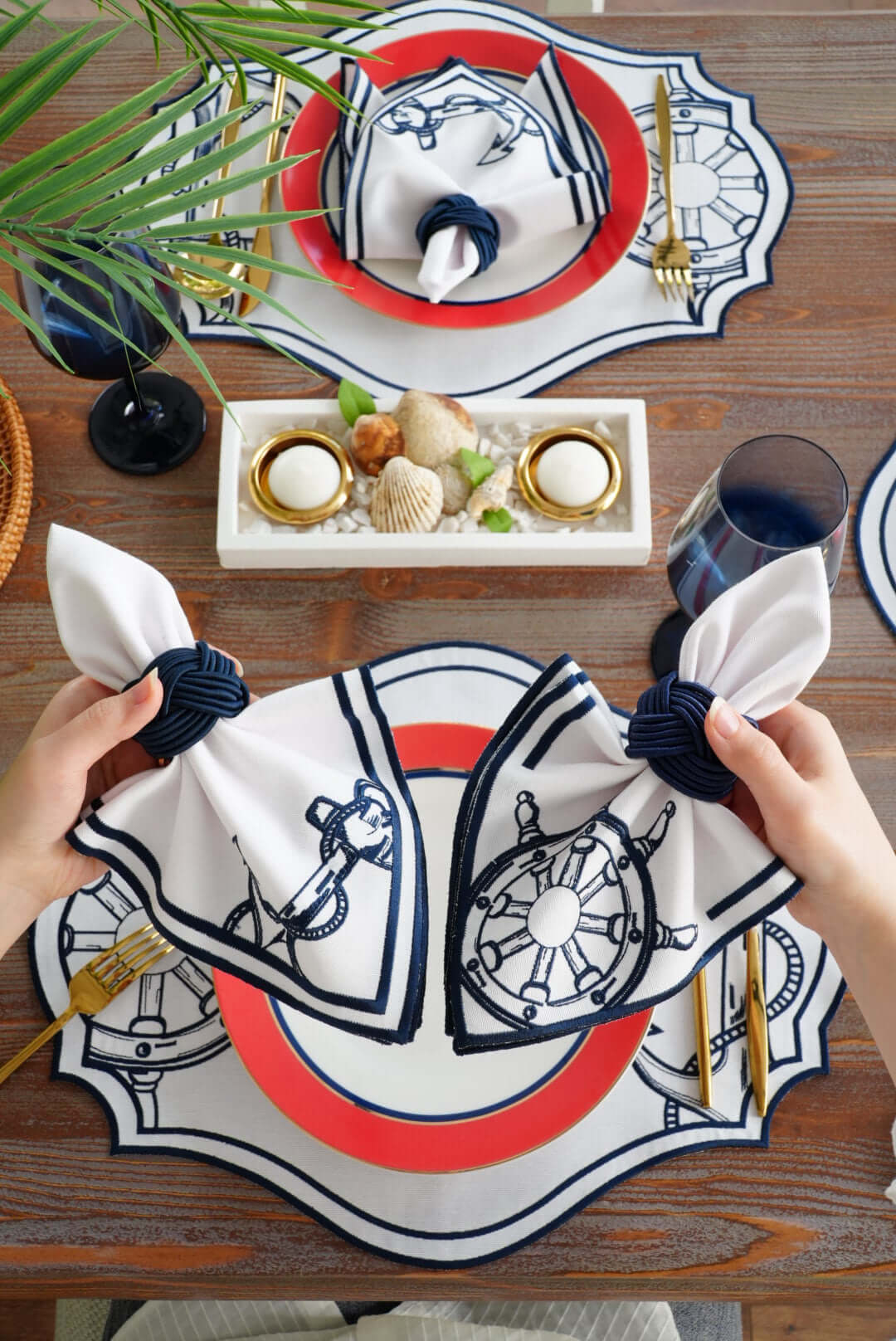 Mariner Design Embroidered Placemat Set - Navy Colour Waterproof Fabric - 6 Persons - 18 Pcs.