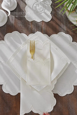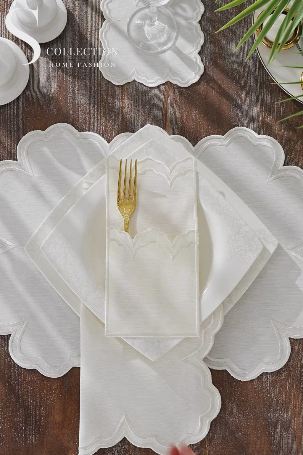 Cloud Design Off White Placemat Set - Waterproof Fabric - 6 Persons - 24 Pcs. Full Set
