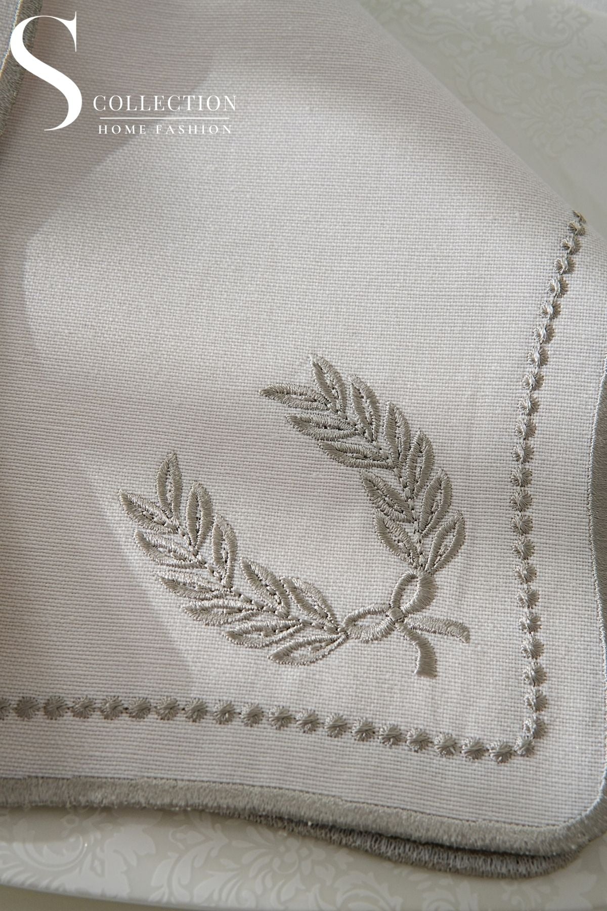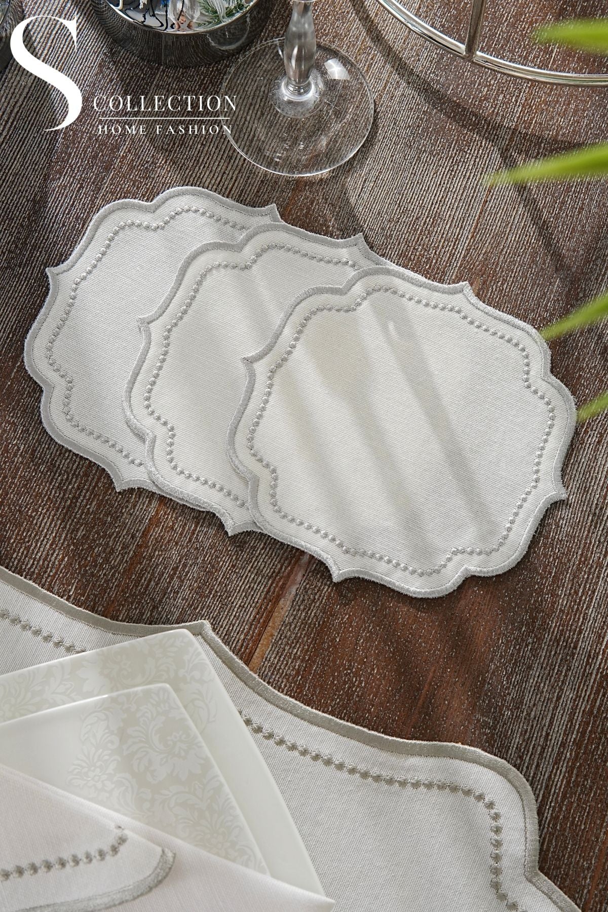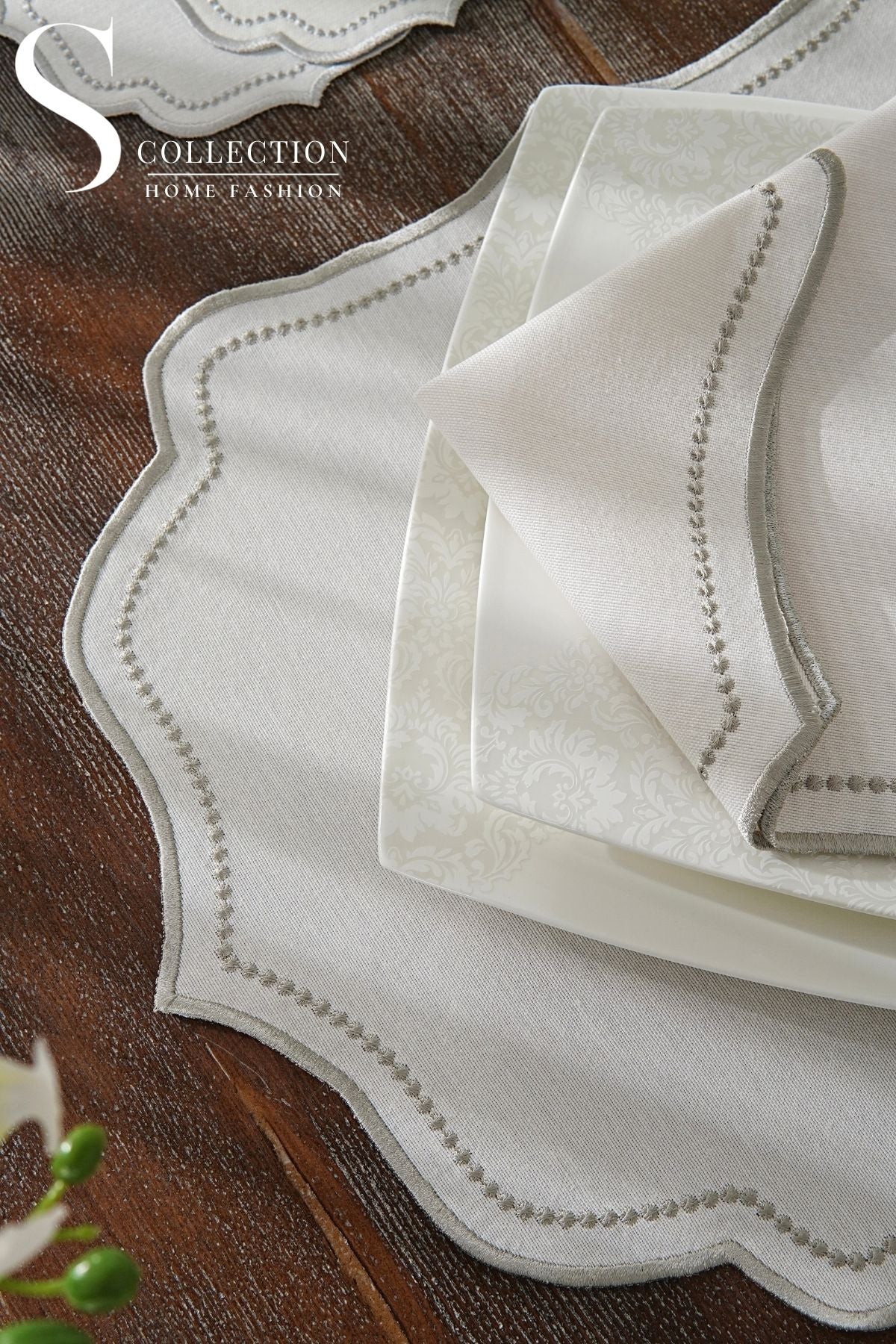 Laurel Wreath Silver Design Placemat Set - Waterproof Fabric - 6 Persons - 24 Pcs. Full Set