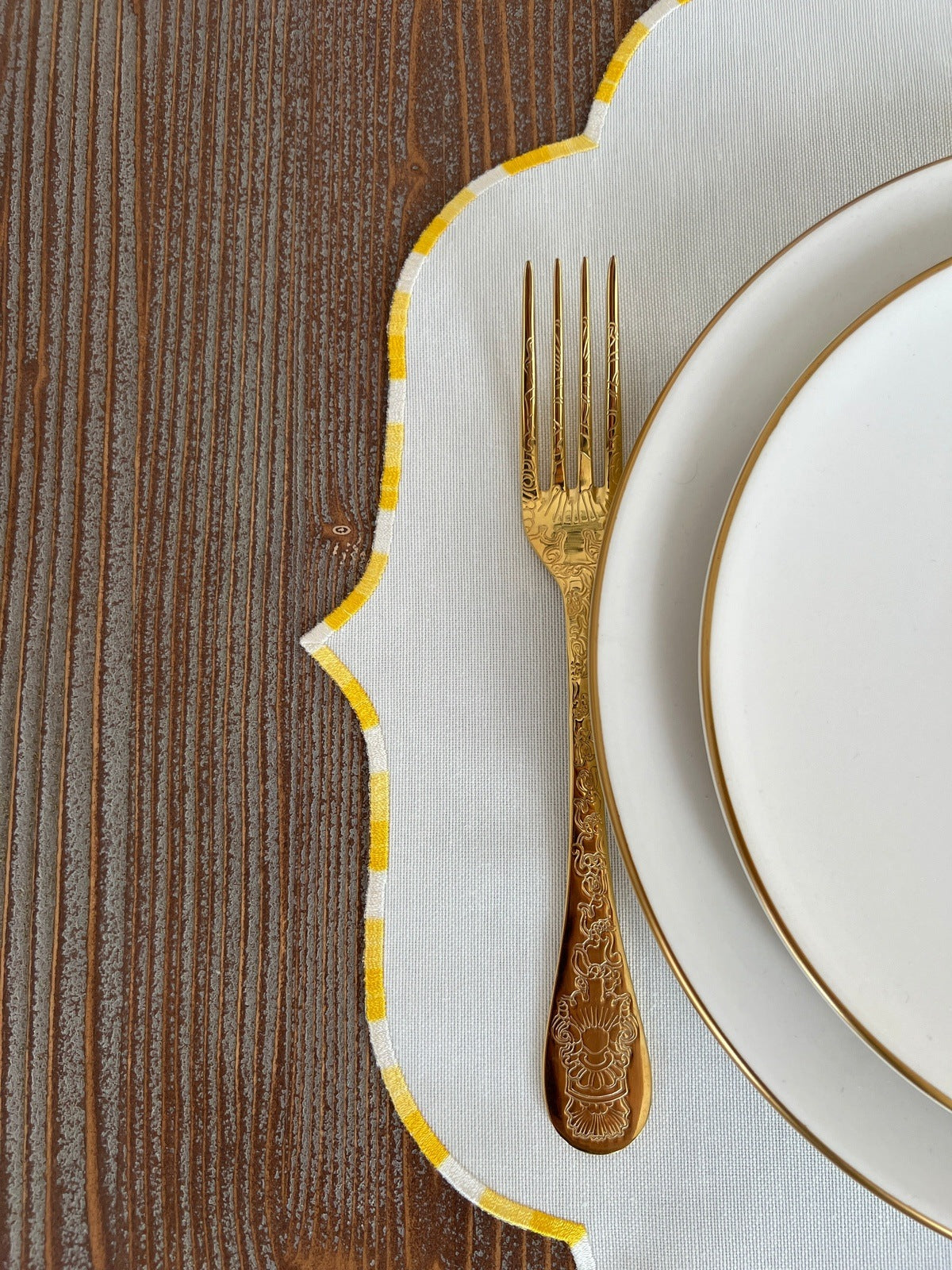 Zebra Design Placemats - Waterproof Fabric - 12 Persons - Yellow Embroidered