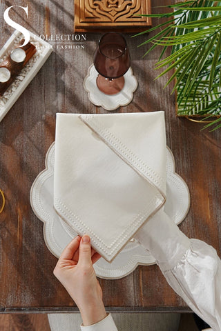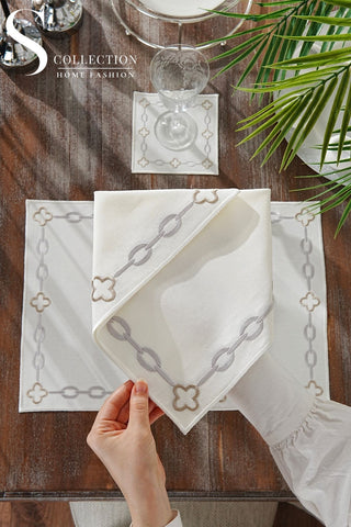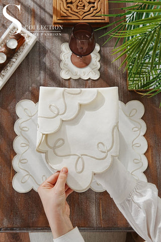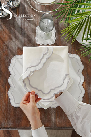 Graceful Off White Design Placemat Set - Waterproof Fabric - 6 Persons - 24 Pcs. Full Set