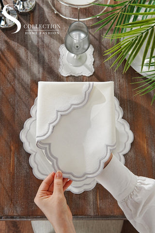 Graceful Silver Design Placemat Set - Waterproof Fabric - 6 Persons - 24 Pcs. Full Set