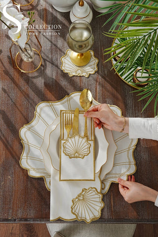 Marine Gold Design Placemat Set - Waterproof Fabric - 6 Persons - 24 Pcs. Full Set