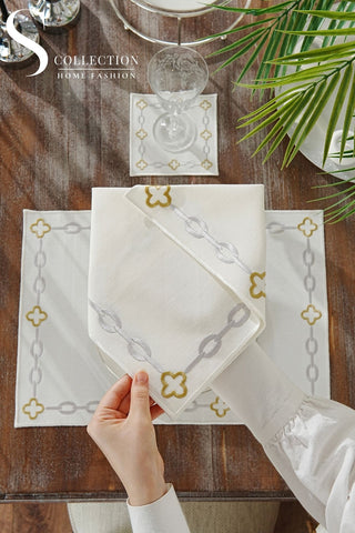 Cadena Gold Border - Silver Design Placemat Set - 6 Persons - Waterproof Fabric - 24 Pcs. Full Set