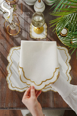 Cadena Silver Border - Gold Design Placemat Set - 6 Persons - Waterproof Fabric - 24 Pcs. Full Set