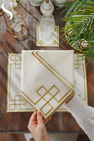 Leo Gold Design Placemat Set - Waterproof Fabric - 6 Persons - 24 Pcs. Full Set