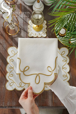 Giovanni Gold Design Placemat Set - Waterproof Fabric - 6 Persons - 24 Pcs. Full Set