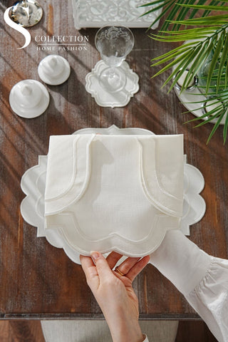 Amelia Off White Design Placemat Set - Waterproof Fabric - 6 Persons - 24 Pcs. Full Set
