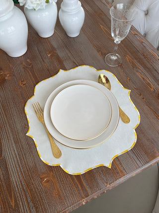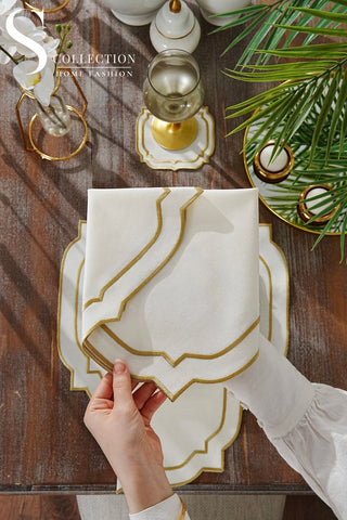 Camila Gold and Off White Design Placemat Set - Waterproof Fabric - 6 Persons - 24 Pcs. Full Set