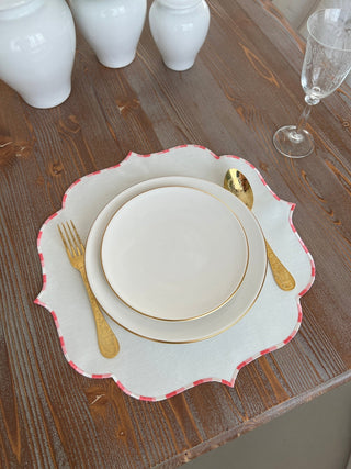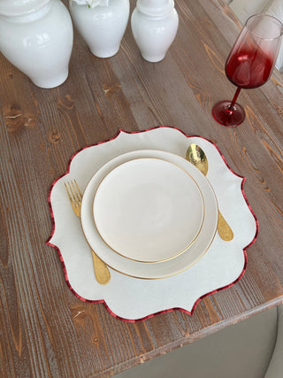 Chantal Off White Design Placemat Set - Waterproof Fabric - 6 Persons - 24 Pcs. Full Set