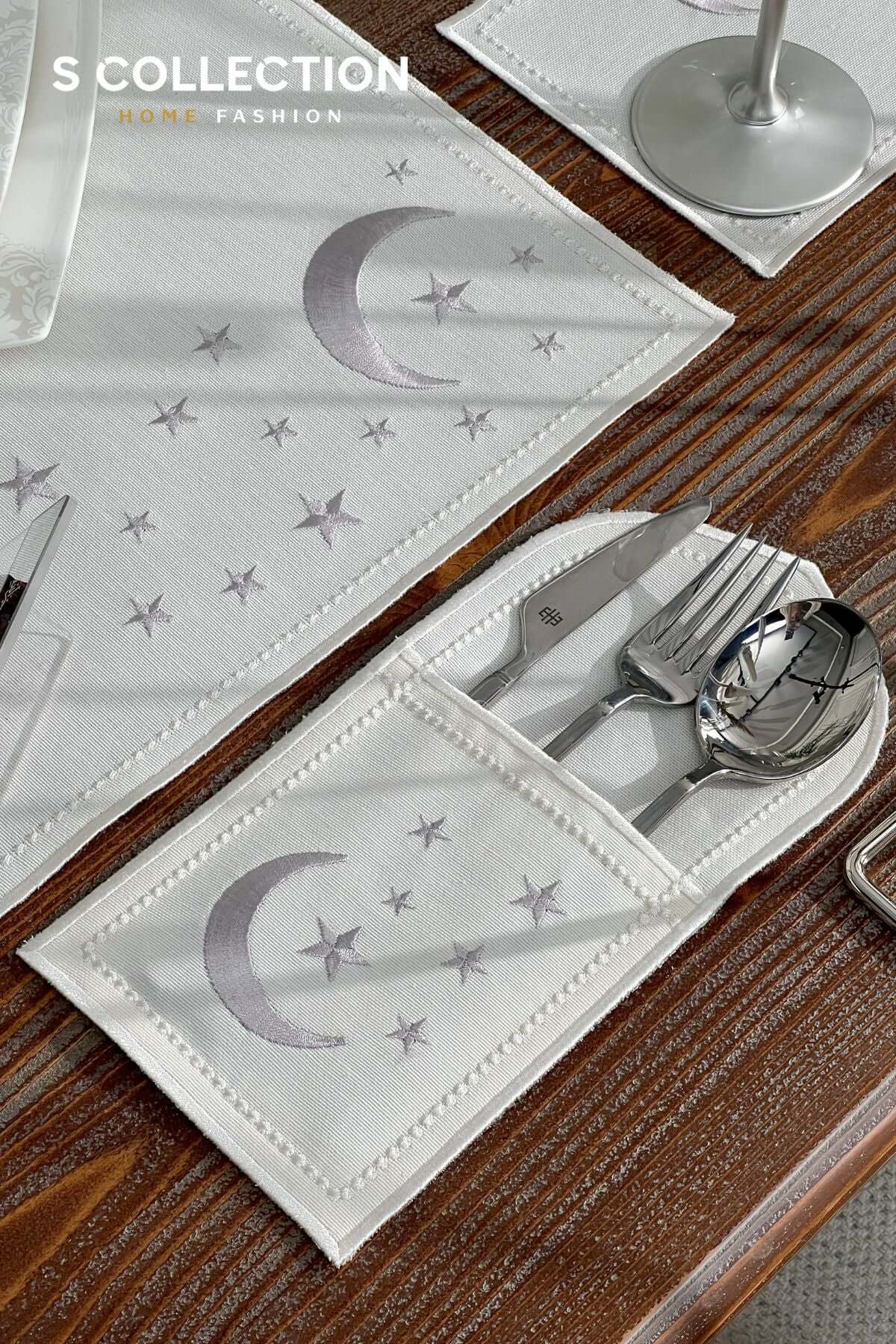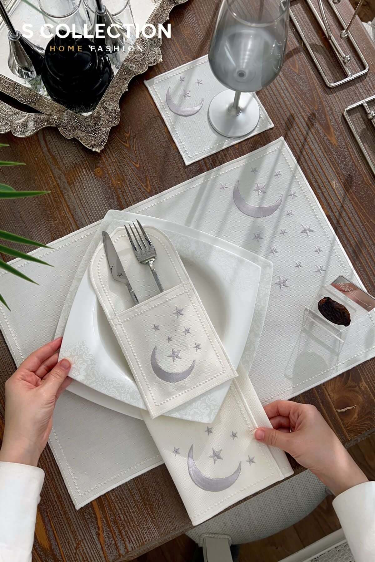 Ramadan Design Silver Luna Placemat Set - Waterproof Fabric - 6 Persons - 24 Pcs. Full Set