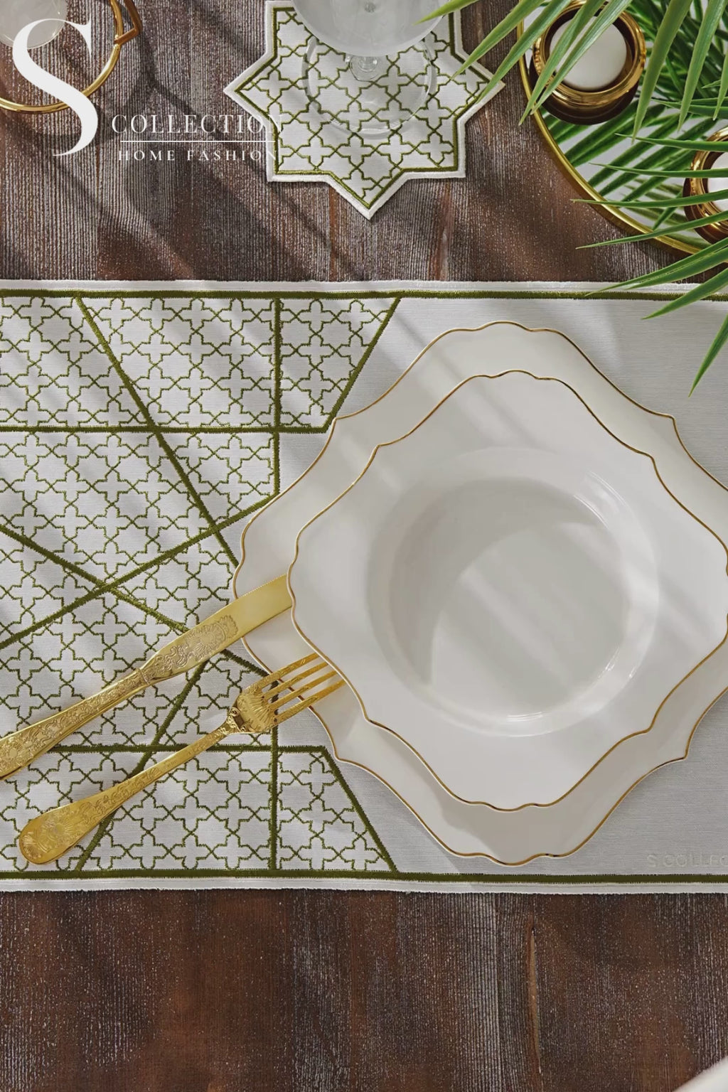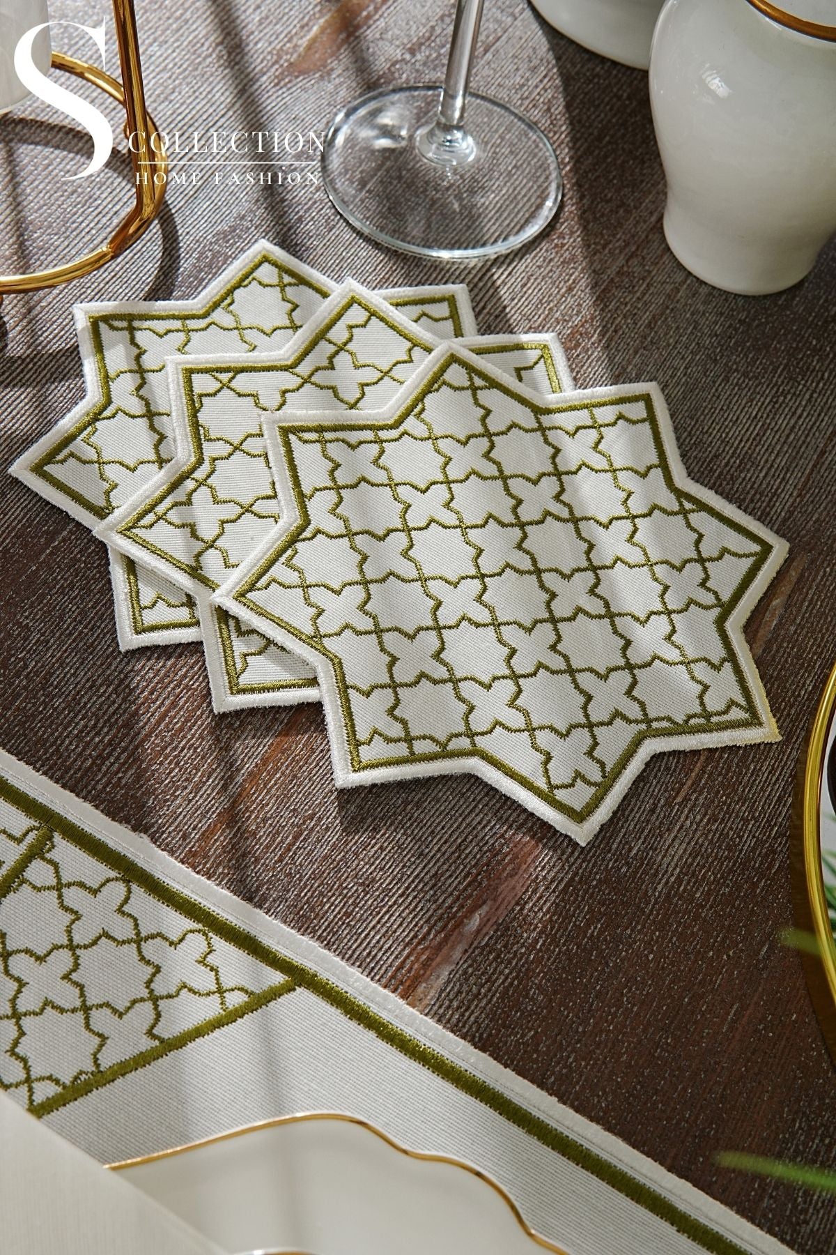 Rimal Olive Design Placemat Set - Waterproof Fabric - 6 Persons - 18 Pcs. Full Set