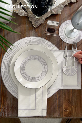 Rimal Silver Design Placemat Set - Waterproof Fabric - 6 Persons - 18 Pcs. Full Set