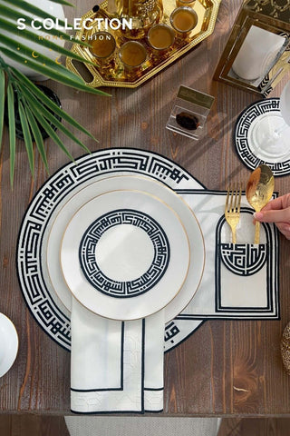 Dar El Salam Design Gold Placemat Set - Waterproof Fabric - 6 Persons - 24 Pcs. Full Set