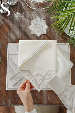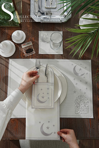 Ramadan Design Silver Glamorous Placemat Set - Waterproof Fabric - 6 Persons - 24 Pcs. Full Set