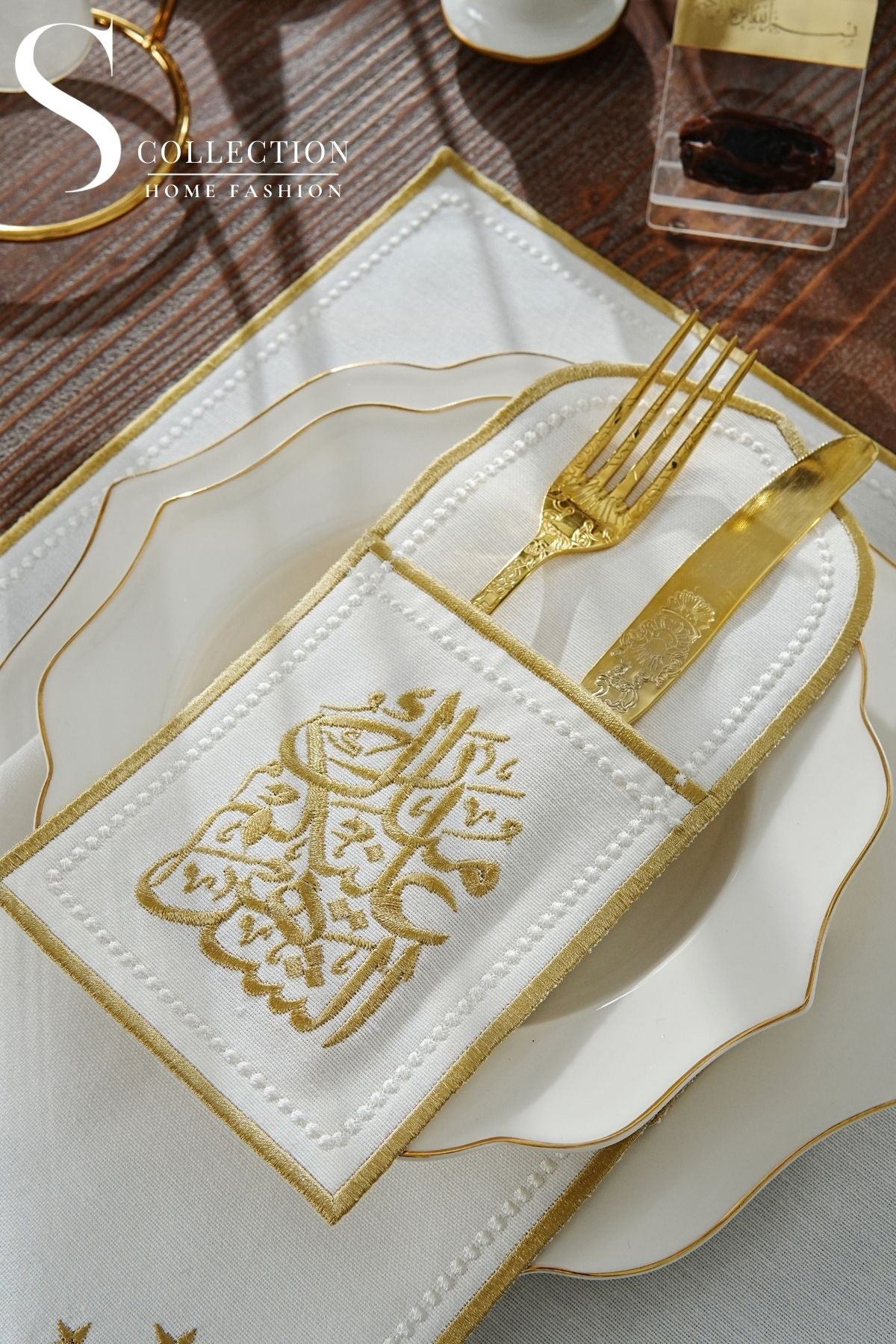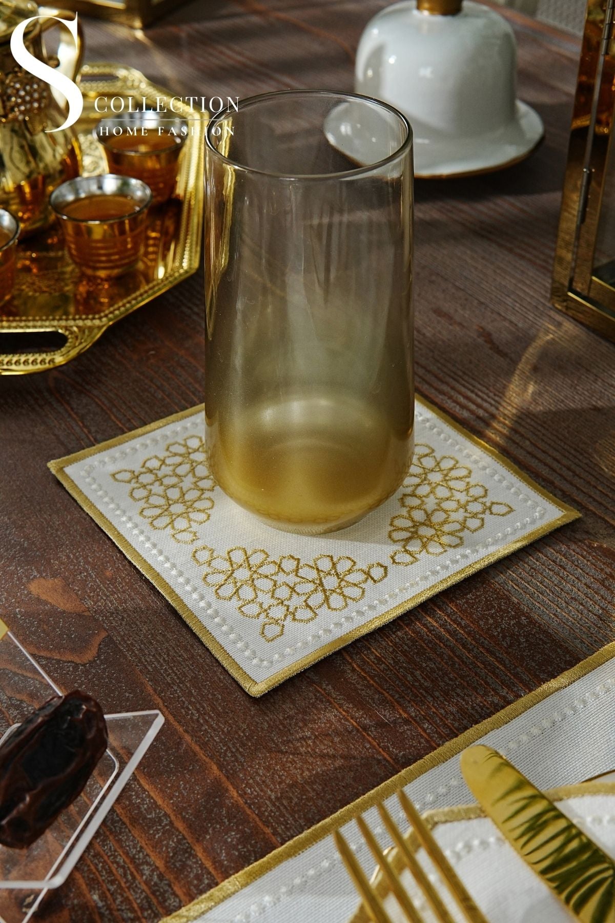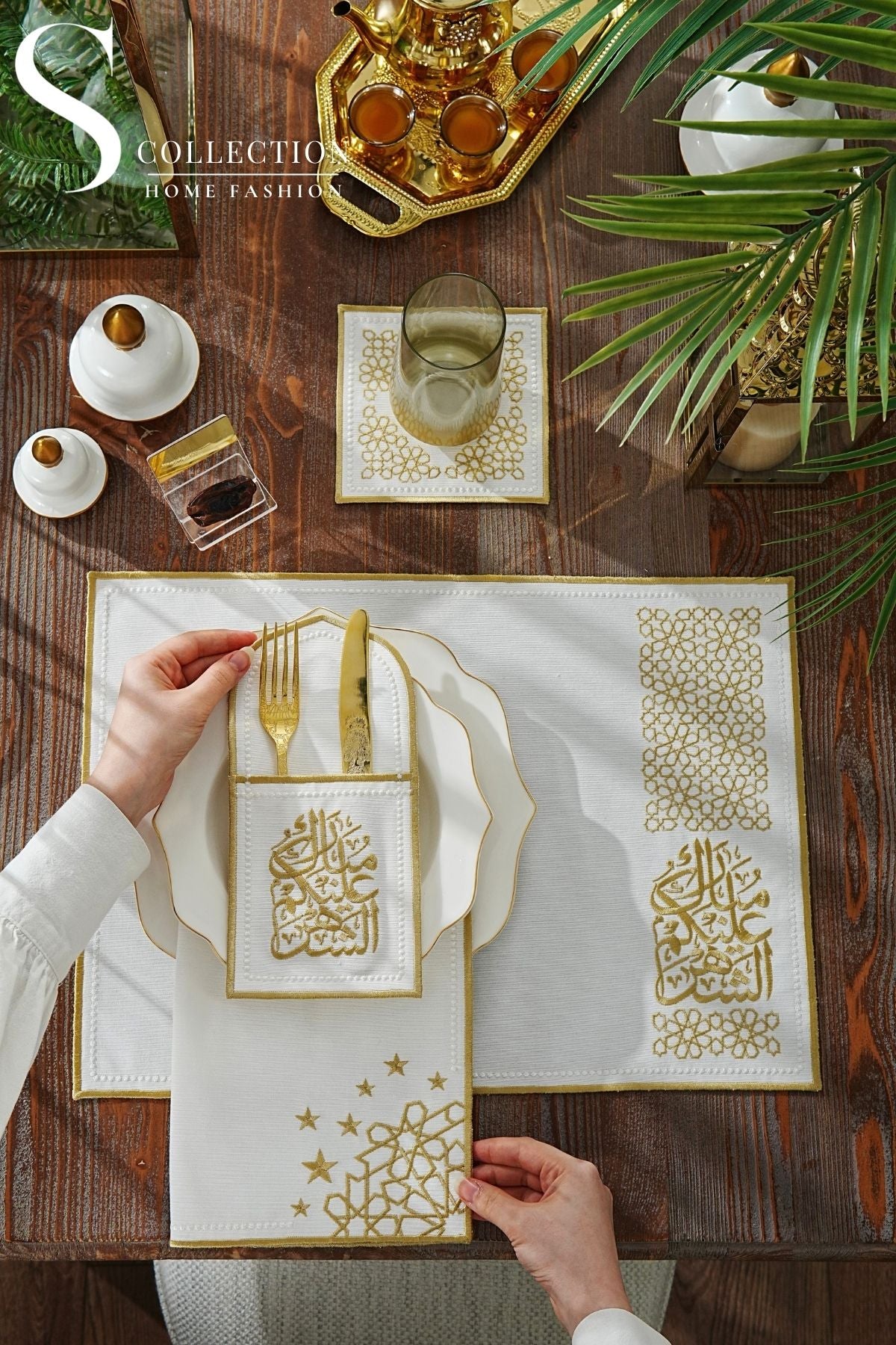 Ramadan Design Gold Chic Placemat Set - Waterproof Fabric - 6 Persons - 24 Pcs. Set