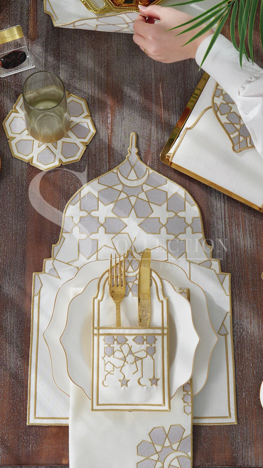 Elevate your Ramadan dining experience with our meticulously crafted 26-piece placemat set, designed to bring elegance and harmony to your table.