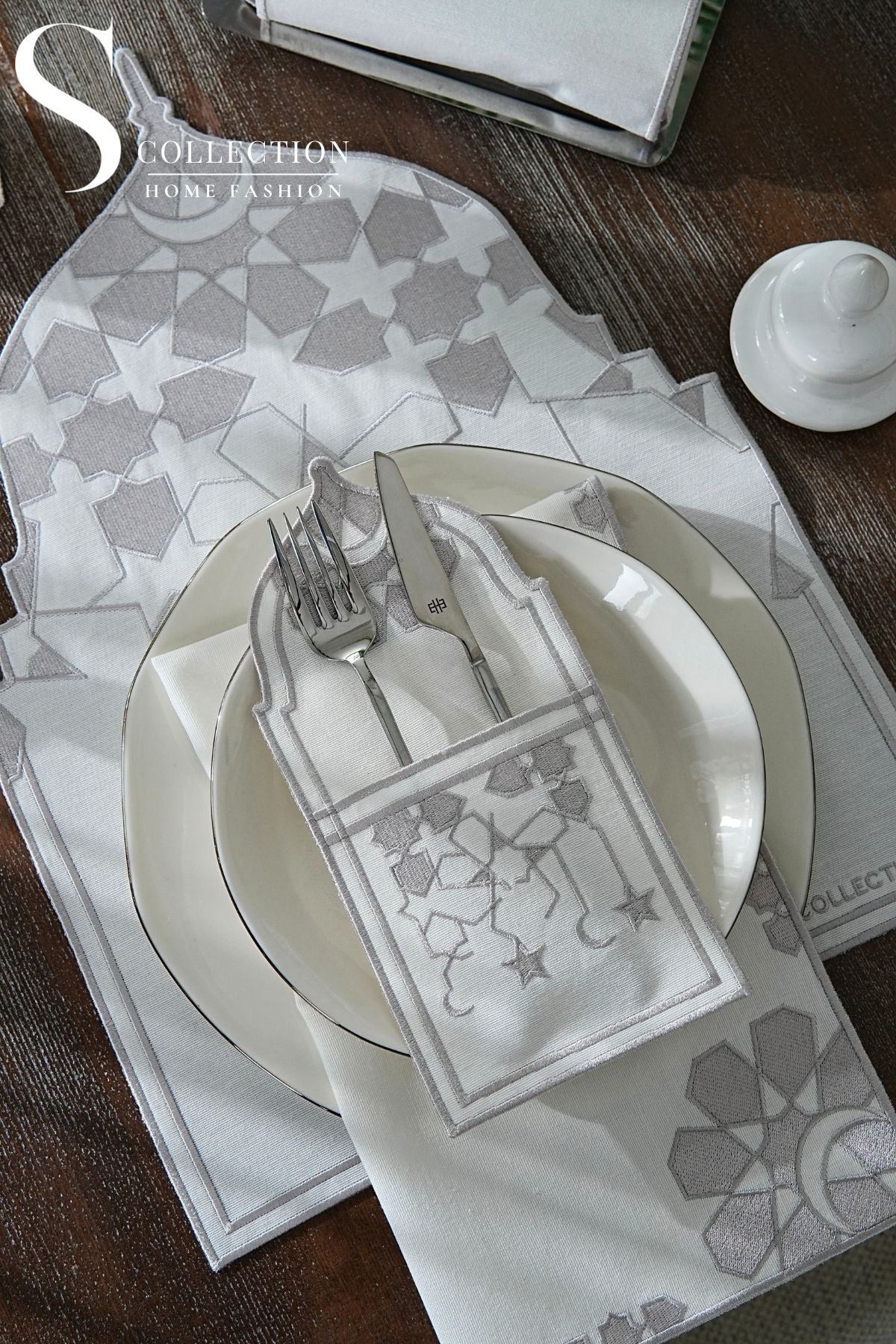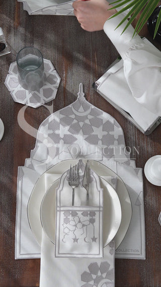 Elevate your Ramadan dining experience with our meticulously crafted 26-piece placemat set, designed to bring elegance and harmony to your table.