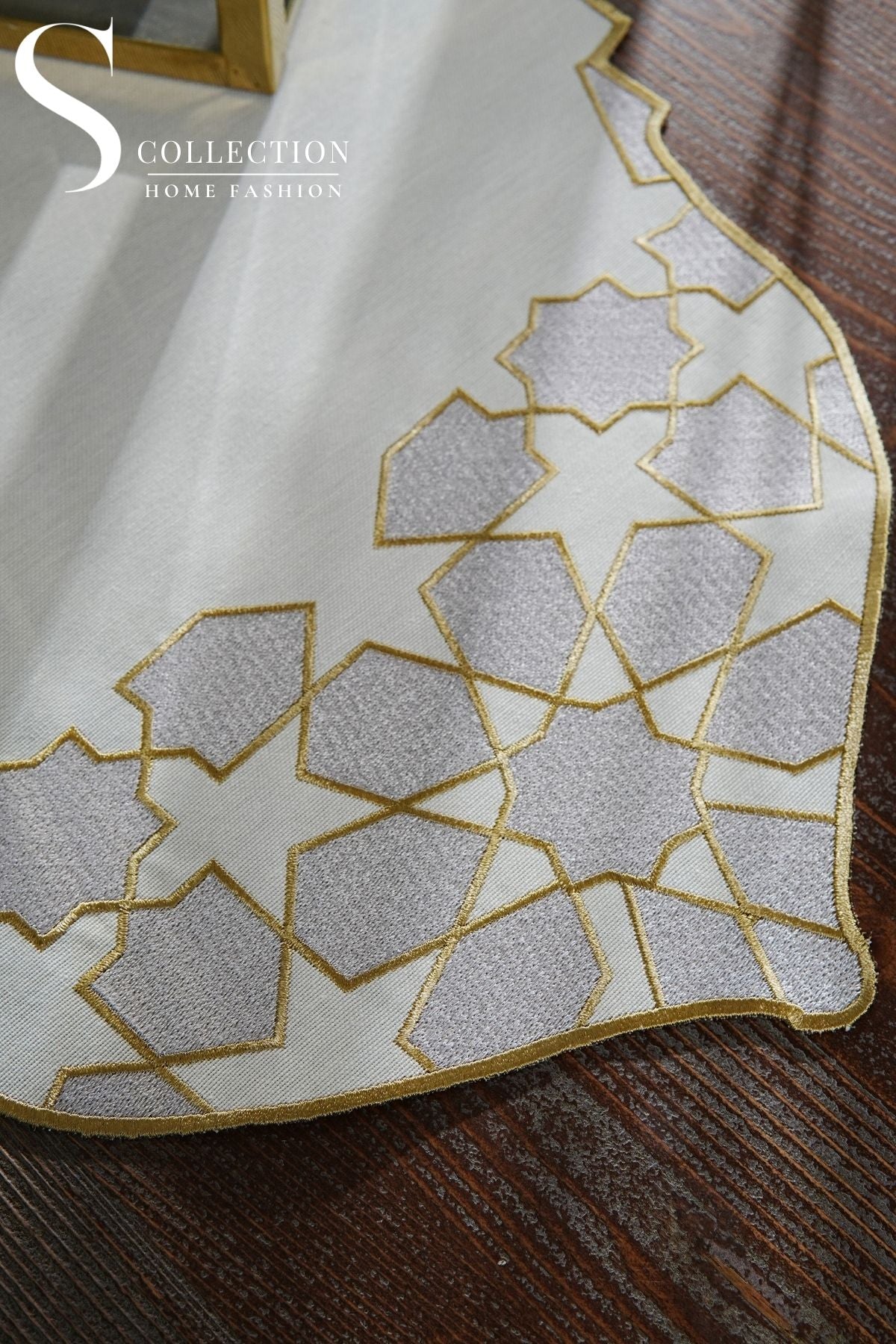 Ramadan Dome Design Runner - Waterproof Fabric - Silver and Gold Embroidered