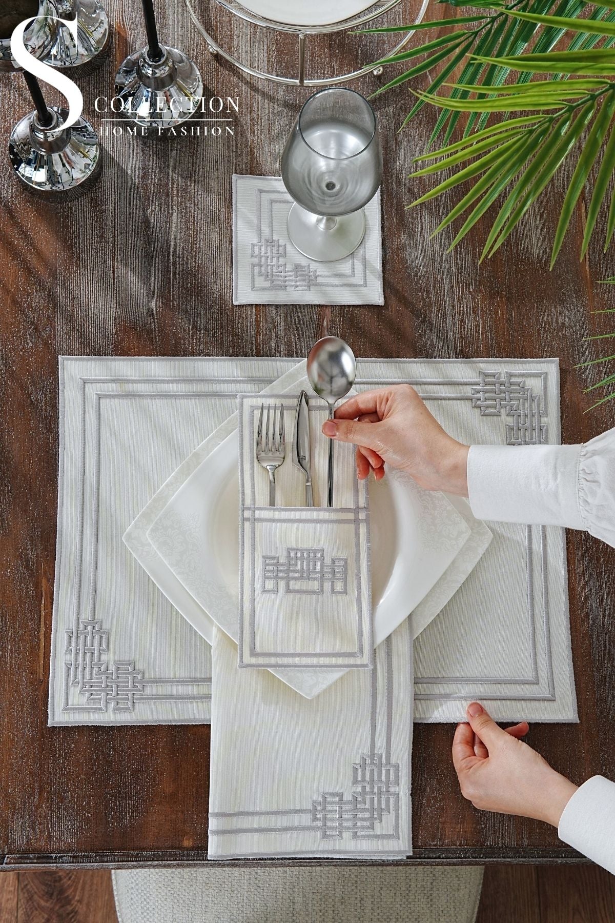 24-Piece Embroidered Set for 6 People