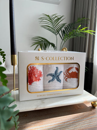 Sea Life Design Gift Towel Set - Colorful Embroidered