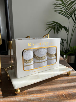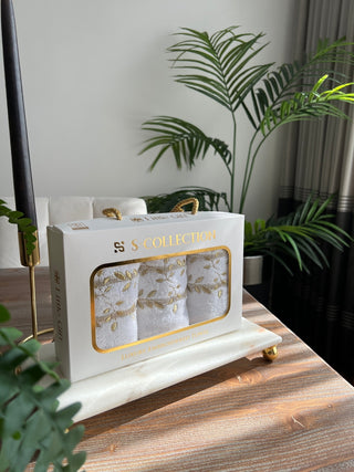 Olive Branch Design Gift Towel Set - Gold Embroidered