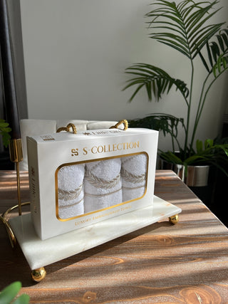 Olive Branch Design Gift Towel Set - Silver Embroidered