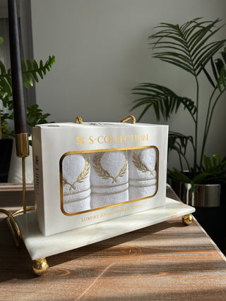 Laurel Wreath Design Gift Towel Set - Gold and Silver Embroidered