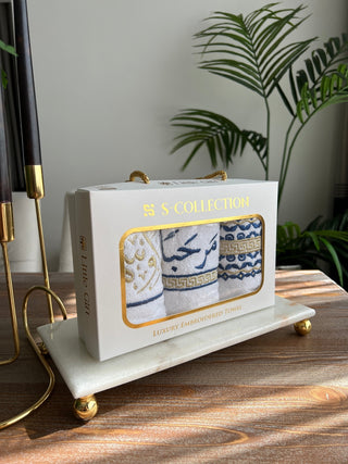 Welcome Elegance Design Gift Towel Set - Gold and Blue Embroidered