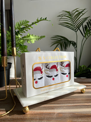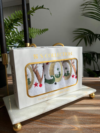 Christmas Deer Design Gift Towel Set - Colourful Embroidered