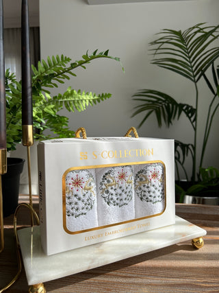Christmas Snowflake Design Gift Towel Set - Gold Embroidered