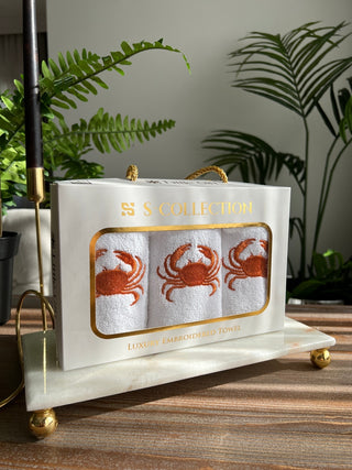 Crab Design Gift Towel Set - Pumpkin Color Embroidered